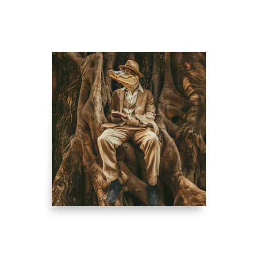 Livraison gratuite !Affiche Art Décalé : Alligator Élégant et Intellectuel
